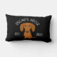 Add a touch of whimsy to your home with this charming throw pillow featuring an adorable cartoon drawing of a dachshund. Personalize this unique gift with the dog's name and the year they joined your family. This custom throw pillow makes a pawsome present for any wiener dog lover, celebrating their furry best friend.