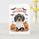 Cute dachshund "Happy Halloweenie" card features a cute ghost Dachshund with cute pumpkins. Personalize with your custom text on the inside of the card.