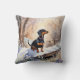 Cute Dachshund Winter Snow Watercolor Dog Breed Throw Pillow