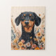 Cute Dachshund with Wildflowers Painting Jigsaw Puzzle