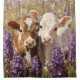 This charming artwork showcases adorable dairy cow calves standing amidst a vibrant field of blooming lupine flowers. The soft colours and rustic farm setting create a heartwarming and picturesque country scene.