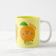 Cute dancing orange citrus fruit Two-Tone coffee mug