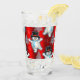 This cute Christmas glass has a pattern of snowmen, dressed in top hats and scarves dancing for joy in the snow. All around them are snow and silver Christmas trees. Behind them all is a brilliant, vivid red background. This cute, festive glass will look great on the Christmas table this year.