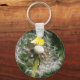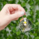 Cute white dandelion with a little yellow petal, and green grass. Marco nature photography.