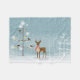 Cute deer with red scarf and birds in snowy woods. Customizable fleece blanket template.