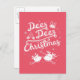 Celebrate a deer deer Christmas with this cute typography postcard design. It is a humorous pun take on dear dear Christmas with a doodle of a pair of reindeer in love, jungle bells with ribbon and mistletoe. Personalize the background to your favorite Christmas color. To delight your sweet other half!