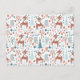 A postcard with an adorable Christmas pattern. Cute winter deer with antlers prancing around a forest of trees and grasses.
