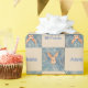 Cute Deer Reindeer Blue Happy Birthday Kids Wrapping Paper. This is a print of a reindeer head cut out of a wooden plate on a painted background. Add your name and text.