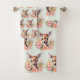 Towel set with a beautiful illustration featuring a cute deer. Surrounded by pink roses and flowers.