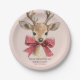 Cute Deer with Red Bow Neutral Christmas Paper Plate