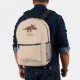 Minimalist Cute Dino Dinosaur Personalized Beige backpack with colourful triceratop and custom name or text