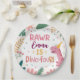 Celebrate your little one’s special day with this adorable personalized plate featuring a playful pink dinosaur wearing a party hat, surrounded by colourful confetti and leafy accents. Perfect for a “Dino-Four” themed birthday party, this design is customizable with the child’s name, adding a fun and unique touch to the celebration. Durable and vibrant, it’s both a practical keepsake and a delightful addition to any dino-themed party decor.