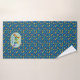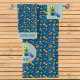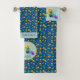 This gorgeous bath tower set is absolutely stunning! It features a pattern of cute 3d dinosaur figures on blue background, perfect for kids who love dinos. It comes with the possibility to add a name and Initial.