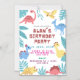 This cute dinosaur birthday invitation features friendly dinos, tropical leaves, and playful colors — the perfect combo for a fun prehistoric celebration.