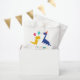 Cute and colourful whimsical dinosaur birthday party "Thank you for stomping by." custombirthday favour bag. Hand-drawn illustration by Kristine Lee www.kristineleedesigns.com