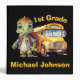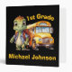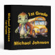 This is a cute binder for a boy featuring an adorable dinosaur with his backpack standing in front of a school bus. The text on the binder is customizable so you can personalize it to suit your needs.