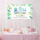 Mignonne C'est une bannière à thème Baby shower de garçon Dinosaure ! Le design présente un adorable dinosaure d'aquarelle juste haché d'un oeuf, typographie colorée, feuilles de palmiers et autres plantes botaniques. Le modèle est une combinaison de script de calligraphie et de typographie noire moderne contre un arrière - plan blanc classique. Personnalisez cette bannière de baby shower en ajoutant votre nom et votre date.