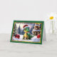 This playful Christmas card showcases an adorable green dinosaur wearing a Santa hat, standing in a snowy, winter wonderland. With a backdrop of twinkling Christmas trees and festive decorations, the scene captures the magic of the holidays with a whimsical twist. Bright red ornaments rest in the snow, adding a cheerful pop of colour, while the message "Merry Christmas" is written in an elegant script at the top. Framed with a colourful and festive border, this card is perfect for kids or anyone who loves a lighthearted and unique holiday greeting.