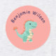 Cute Dinosaur Custom iron on circle Labels with a Name.