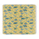 Lots of blue dinosaurs, Tyrannosaurus rex, Spinosaurus, Stegosaurus, Diplodocus and Triceratops on a yellow background.