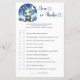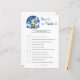Whimsical design for Boy Baby Shower game features Watercolor hand painted illustration of a Cute watercolor dinosaur hugging teddy bear in the starry night. Hand drawn typography.