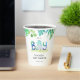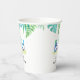 It's a Boy Dinosaur themed baby shower paper cups! Design features an adorable watercolor baby dinosaur just hatched from an egg, colourful typography, palm leaves and other botanical greenery.