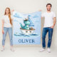 Cute Dinosaur Nautical Captain Personalized Blue Fleece Blanket