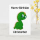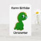 Cute green dinosaur with blue eyes and a happy smile. Below is a template to replace with your name.