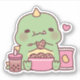 A doodle of a cute green dinosaur munching on cookies with potato chips and bubble tea on the side! Snack a lot like this dinosaur! ♥