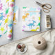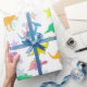 Cute Dinosaurs Wrapping Paper. Cute colour dinos pattern with happy smiling T-Rex, Stegosaurus, Parasaurolophus and Diplodocus with colour stars pattern print dinosaur wrapping paper for your birthday gifts and Christmas presents. This adorable cartoon dinosaur gift paper is fully customizable, personalize with your name, add your texts and images!