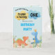 Dinosaurs are playing in the grass tossing a bone back and forth on front and playing among the palm trees on back inside of this cute 1st Birthday Party design with a template for you to exchange with your child's photo (or simply delete). Just add your details and photo to complete this memorable occasion design.