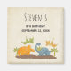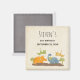 Save the date magnet with a cute design featuring 4 dinosaurs. 2 are flying and 2 are on the ground. Created with watercolors.
