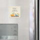It was a bit smaller than expected, but I was too excited to check dimensions. The product itself send well printed though the grey text is a bit paint. Magnet worked perfectly on my fridge.