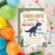 Make your little one's birthday DINO-MITE with this fun and playful dinosaur-themed birthday invitation! Featuring a charming T-Rex wearing a party hat, tropical leaves, and bold, colourful lettering, this design is perfect for a roaring-good time. Customize it with your child's name, age, party details, and RSVP information for a personalized touch by clicking on "Personalize."
