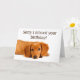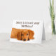 A beautiful little Dachshund sending sad eyes and a warm message! A cute belated birthday card.
