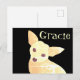 This adorable faded personalized dog postcard is created of my own beloved chihuahua named Gracie featuring big brown eyes and her long ears in soft shades of yellow—sweetest dog ever!! A cute thank you card to send to friends and family: replace her name with "Thanks". A bold black background adds a dramatic effect.