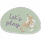 Let's play! This cute illustration of a tan dog playing with toilet paper has a mid-century modern vibe with its organic shape and sage and purple colour scheme. The colours have a spring feeling. Remind yourself how cute your dog is when it's playing naughty games with "Let's play."