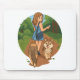 Cute Dog Mom Walking Puppies Forest Trail Illustra Mouse Pad
