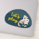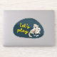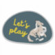 Let's play! This cute illustration of a tan dog playing with toilet paper has a mid-century modern vibe with its organic shape and lemon and navy colour scheme. Remind yourself how cute your dog is when it's playing naughty games with "Let's play."