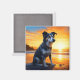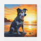 Cute dog sitting on a beach at sunset ai art. Pretty art if you like dogs, sunsets or the beach.