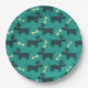Cute Dog Pattern with Bone on Green Background Paper Plate