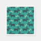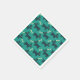 Paper napkins designed with a repeating pattern featuring a cute smiling doggy with floppy ears and a dog bone. Green background.