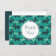 A thank you card designed with a repeating pattern featuring a cute smiling doggy with floppy ears and a dog bone. Green background. The back has a message which can be personalized / customized.