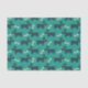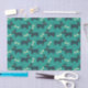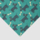 Tissue paper designed with a repeating pattern featuring a cute smiling doggy with floppy ears and a dog bone. Green background.