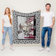 Cute Dog Photo Name Black Paw Prints Silver Grey Fleece Blanket