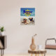 This poster radiates warmth, fun, and the simple happiness of dogs at the beach.