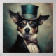 painting of a cute dog wearing a blue top hat and a bow tie, ready for a bachelor party