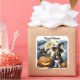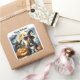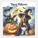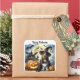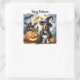 Cute picture of a dog dressed as a witch, with pumpkins and bats, is featured on this Halloween square sticker. With message, "Happy Halloween", makes this a great sticker to use for those special mailings, decorating, scrapbooking and more!