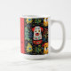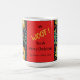 Little dogs decorate this doggedly cute Christmas mug in an adorable Yuletide pattern. The doggies say "We Woof You A Merry Christmas" to your pet loving friends and family members. The design is from the bright art of fauvism with a touch of folk inspiration. The black background emphasizes the festive colours. Christmas trees, greenery, and fun berries, leaves, and other adornments of the winter season fill out the pattern. The black and yellow text is backed by a nice coordinating holiday red. All of the text can be changed. Be sure to edit the example family name and the year.