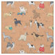 Stylish Cute Different Types Of Dogs Pattern Design Orange Textile Fabric.